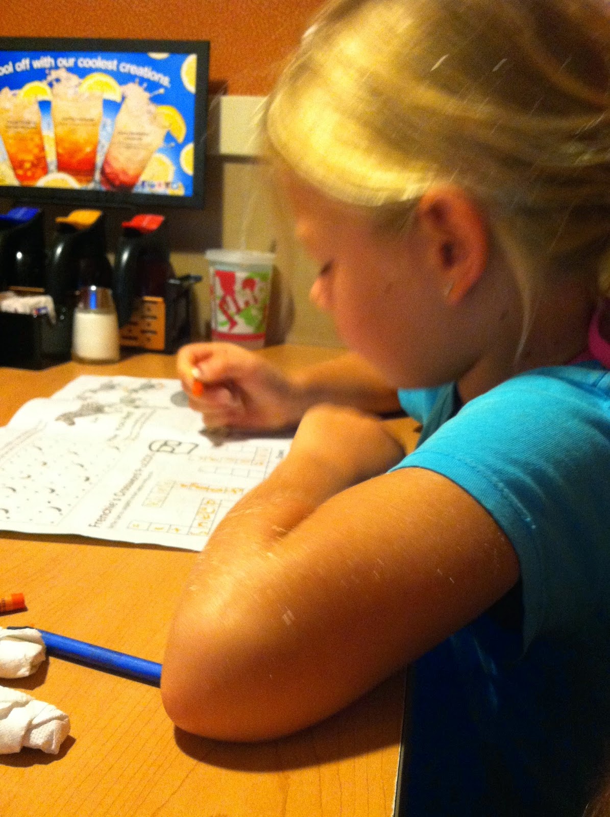 found a homework book in her backpack at the hotel. it provided HOURS of entertainment!